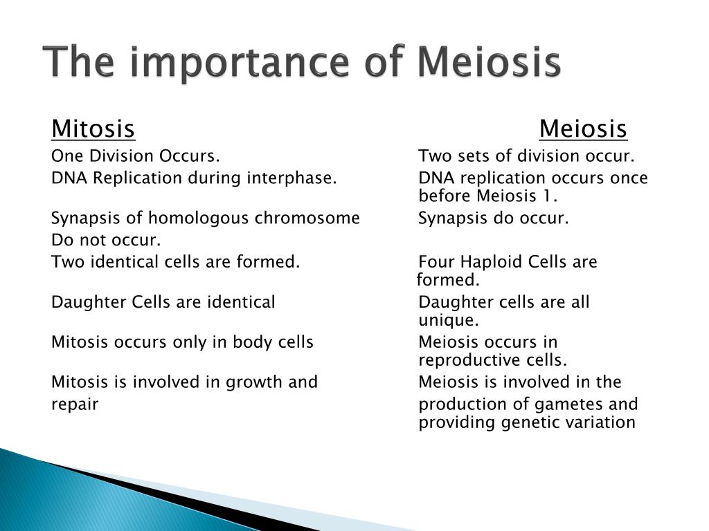 Meiosis is a specialized type of cell division that occurs in sexually reproducing organisms, resulting in the formation of haploid gametes (sperm and egg cells in animals) or spores (in some plants and fungi). It is a crucial process in sexual reproduction because it reduces the chromosome number by half, ensuring that when gametes fuse during fertilization, the resulting zygote has the correct diploid chromosome number.